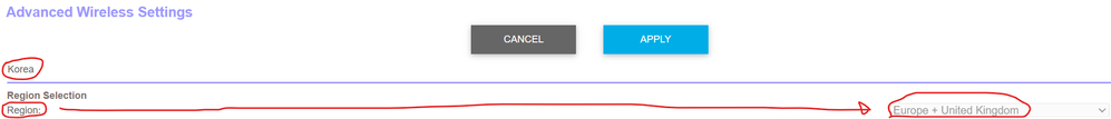 As I mentioned in another thread, I am also seeing "Korea" listed on the Advanced Wireless Settings page, even though my other region settings are correct.