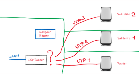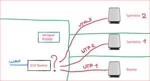 Hi community! I have a Netgear Orbi Wifi 6 RBK853 Multiroom 3 pack. I'm confused how many UTP cables I need going to the Router (on the UTP1 route in the drawing). One cable for WAN and one UTP c...