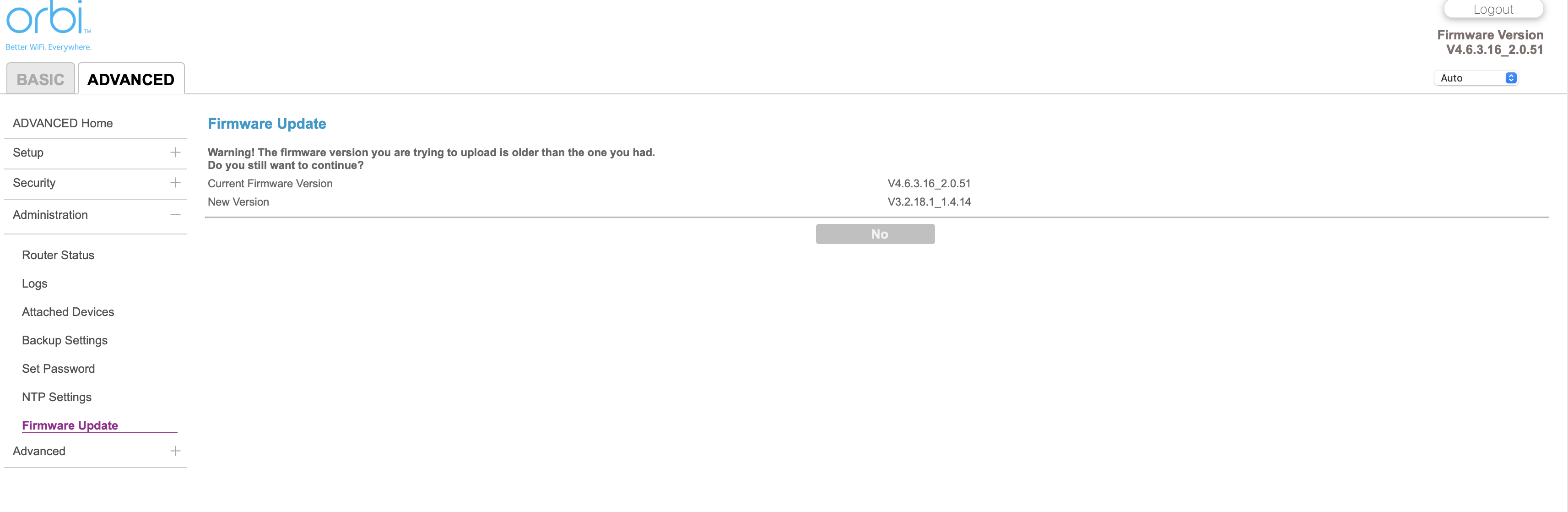 Just did a downgrade from 4.6.3.9 to 3.2.18.1, factory resetted and I see Netgear are pushing an update automatically to 4.6.3.16. (see attached screenshot)