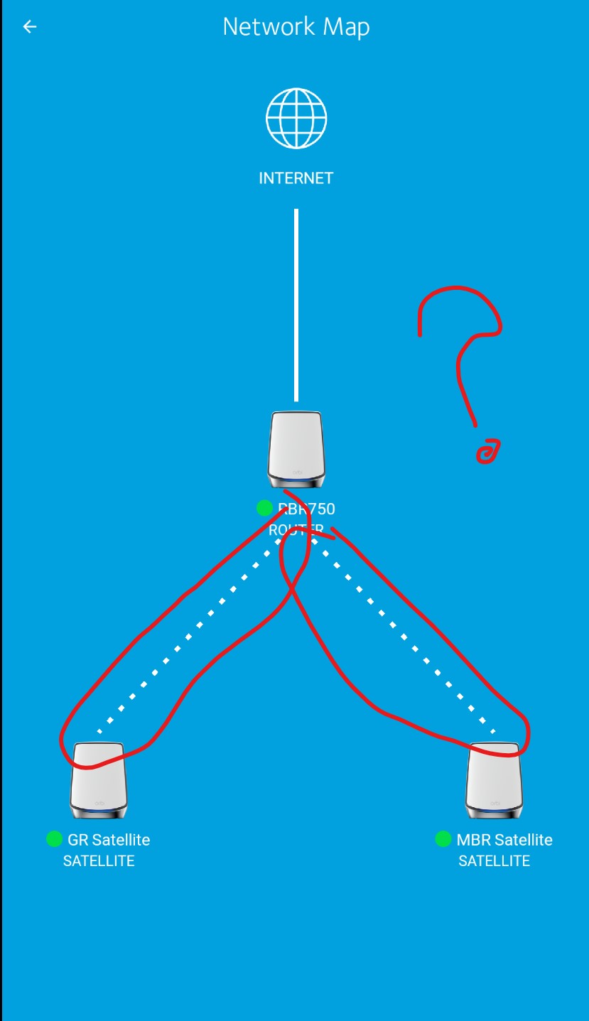 Also to note, the Orbi app has changed from solid lines between the router and satellites, to dashed lines, not sure why. See screen shot attached.