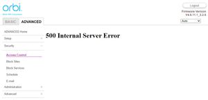 Orbi 750, 500 Internal Server Error, on all Security setting pages