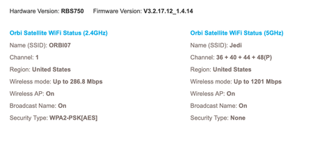 I'm running AP mode for both Router and Satellite. Firmware has been updated to the latest for both: