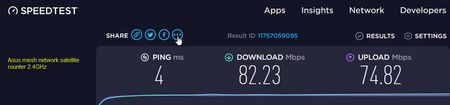 Asus: ping 4 msec, DL 83Mbps, UL 75Mbps