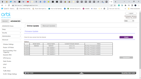 Evening all, Struggling log a support case with Netgear as posted earlier. Hoping someone can help with that but have managed to logon to Orbilogin. Checked basics, and it says the FW is up to da...