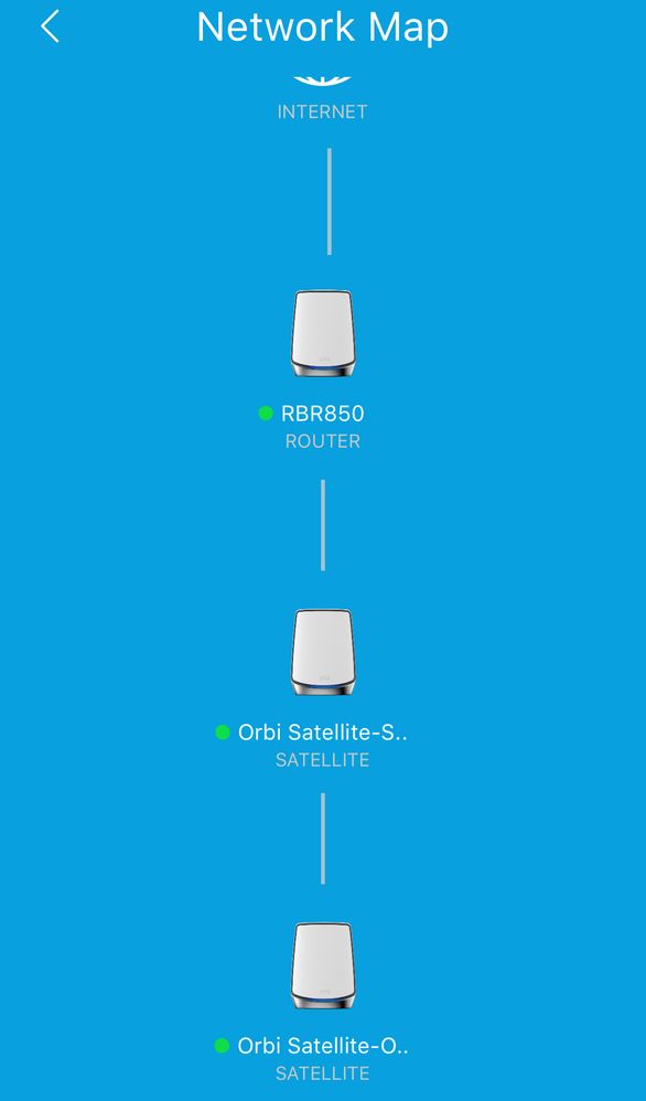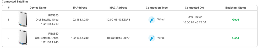 Yes - thanks - both satellites are hardwired back into the RBR850. I find it strange that now one of the satellites (although both being hardwored back into the RBR850) show going through the other satellite. It always was set-up as a Star network.