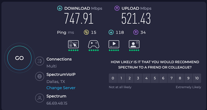 My speeds at the Modem continue to be at or better than 1Gb/1Gb. But via WiFi 12inches away from the router, I see 750Mb Down/520Mb Up.