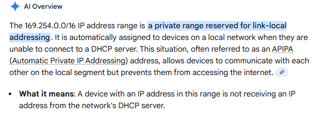 From the title of the post, it appears that you are aware that 169.254 IP addresses are typically the result of a device not getting a response from a network DHCP server: