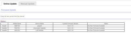 I have an Orbi RBR750 series system with a main router and two satellites. I found that FW 4.6.5.14 was available, and I did the online firmware update. The main router and one of the satellites up...