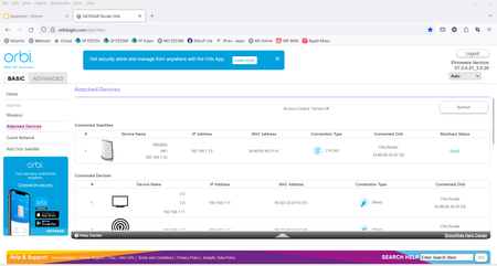 RBS850 wired satellite not showing up on Attached Devices - orbilogin only works near router
