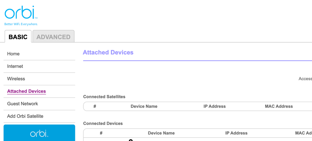 I have my primary router which has always been rock solid. I also have a satellite located ~50' away in an accessory building where my home office is located. It's generally worked great with no issues but the satellite has never appeared in the below list of attached devices. I've been having some sporadic issues as of late where I cannot connect any device (phone, Roku, work computer, etc). Could this cause my constant connection drops? All the lights appear normal on everything and until a few days ago, everything worked flawless despite it never showing my satellite connection anywhere in my config. I did a reset of the satellite today and got the solid blue light indicating things have synched but it never showed up and while I could connect, it was without internet. Router is setup in Router mode. I have tried resetting the satellite and reconnecting both in our accessory building as well as in our main home (50' or less away) and always says successfully connected but still never shows up in the list of devices/satellites.