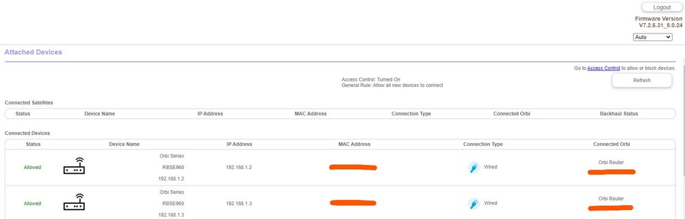 All devices have the same firmware, V7.2.6.31. Satellites are wired backhaul.