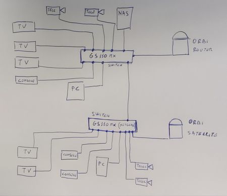Buongiorno a tutti. Mi servirebbe un aiuto per creare una rete cablata con orbi ( indeciso tra 852 o 962 se uscirà ) con 2 switch gs110mx già in mio possesso. Ho fatto uno schema e avrei bisogno di c...