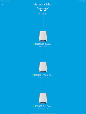See attached picture - I have two wired RBS850s and an RBR850 router. Since the update to 4.6.7.13 yesterday, it shows the 3rd floor router into the satellite into the router. Before, it showed both ...