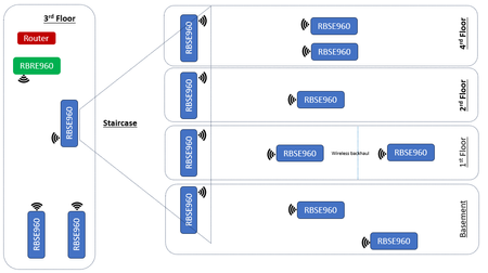Using RBRE960 & RBSE960 in large scale metallic multi-storey structure for MESH WiFi network.