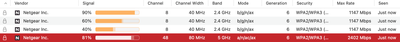 plemans I changed it from 48 to 44 - waited to see it update on my WiFi analyzer app - and tested it, No change in performance. I took this snapshot from the signal analyzer, as you can see (highlighted line) it believes it's a strong signal on 5 GHz with up to 2402 Mbps bandwidth. This is so odd.