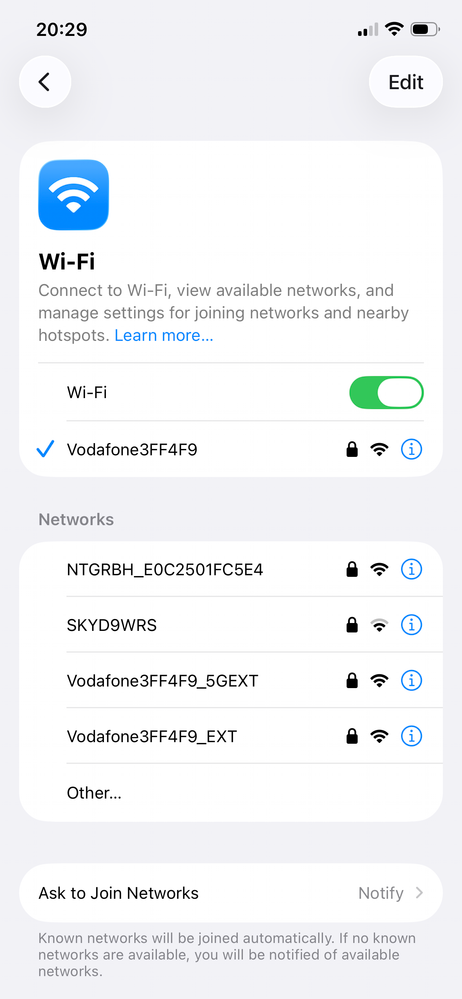 Stranger still is that many devices are default connecting to _EXT despite this extender not being there..... and even more strange is that when i force devices off _EXT and onto the 'main' network they keep disconnecting. This computer I am typing on now connected by default to _EXT this morning. I forced it to forget the _EXT network and join the vodafoneXXXXX network which is does for a bit but then drops connection and asks for the password again. After multiple attempts to join vodafoneXXXXXX I have given up now and reconnected to vodafoneXXXXXX_EXT and the connection is solid. So bizarre