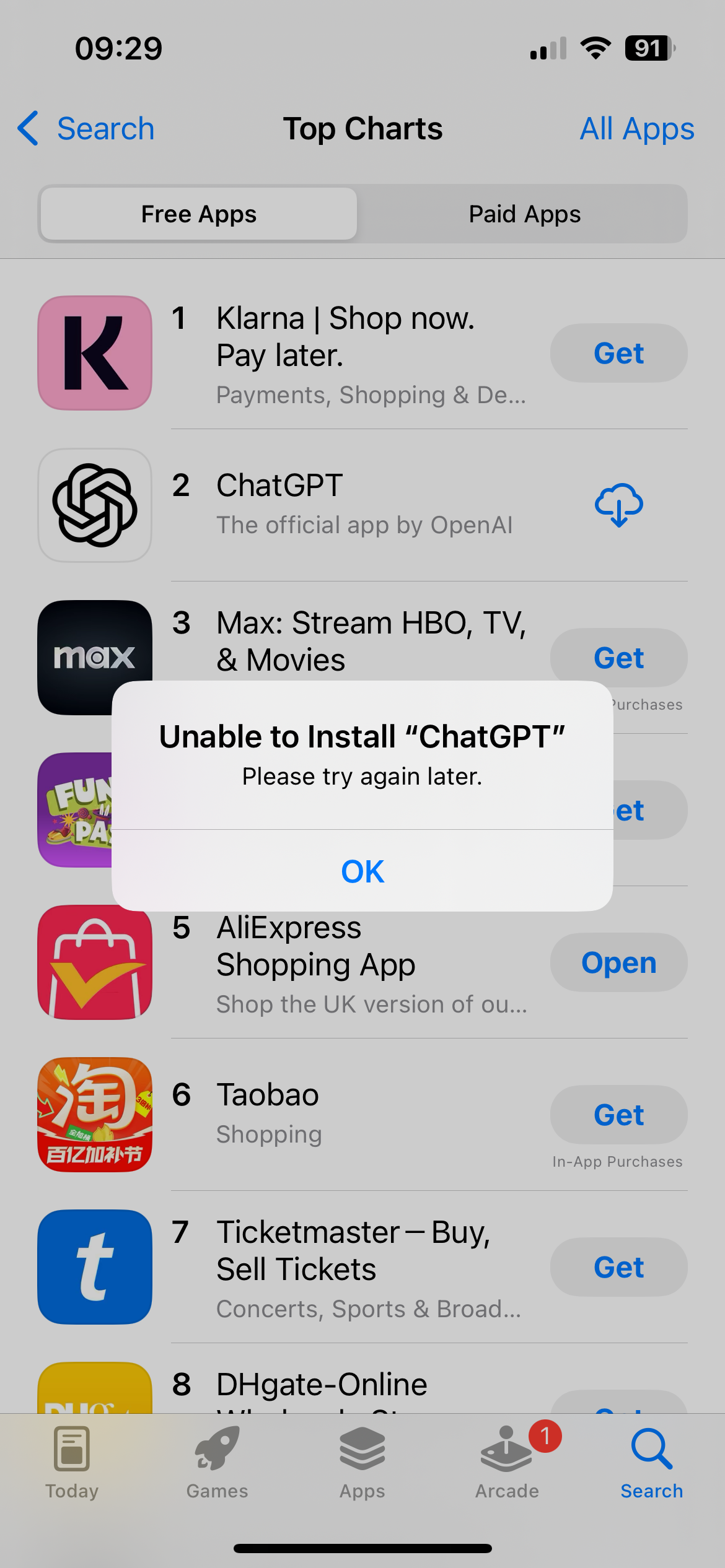 If I select an app, after authenticating, I get the Unable to Install "app name". The app icon is displayed with the "get app" symbol. If I tap the icon, it goes grey and the pie-chat progress starts but never finished. Below the icon it says Loading...