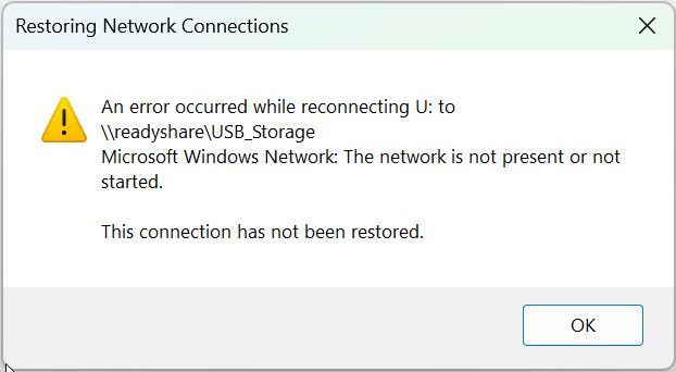Sorry about the other thread. It looks like I started it but I don’t know how that happened because I always use a bookmark to get back to this thread. But that’s how my experience with Netgear has been lately. As for when a computer gets dropped, it is always random. Sometimes it gets dropped when I am actively using it other times when it is idle. Sometimes after 20 minutes of booting the PC, sometimes after an hour of use. And other times right after booting the PC. There is no set pattern to when the PC gets dropped. I have tried both mapping the drive and deleting all mapped drives. It doesn’t make a difference. I prefer mapping the drive because it is easier to see when the connection gets dropped. As for using the IP Address instead of the drive letter, that doesn’t work either. I have been using Netgear routers for at least 20 years. I can’t pinpoint when this issue started but it was sometime after the Windows 11 24H2 update. I am now updated to version 25H2. Most of the time my computers are shut down until I bootup a single PC. After about 20 minutes of use, the PC will lose the connection to readyshare and the router admin page. That’s when the error message appears saying that the device is already in use. It happens even when only one Windows PC is turned on. There are a few ways I can reconnect. But I never had to do that before 24H2. One way is to manually change the IP Address of the disconnected PC. Another way is to switch from a wireless connection to a wired connection. Lastly, I can remove the USB drive from the router and plug it straight to the PC. But these work arounds are unacceptable after paying so much for an RS600 Nighthawk router. For months I have been asking questions to AI chatbots. They have suggested all sorts of solutions from deleting the Windows Credentials to readyshare to disabling the security requirement for SMB. It seems to me that the days of plug and play routers are over. But maybe this new information will give you a clue to what’s going on. At least, thanks for asking.