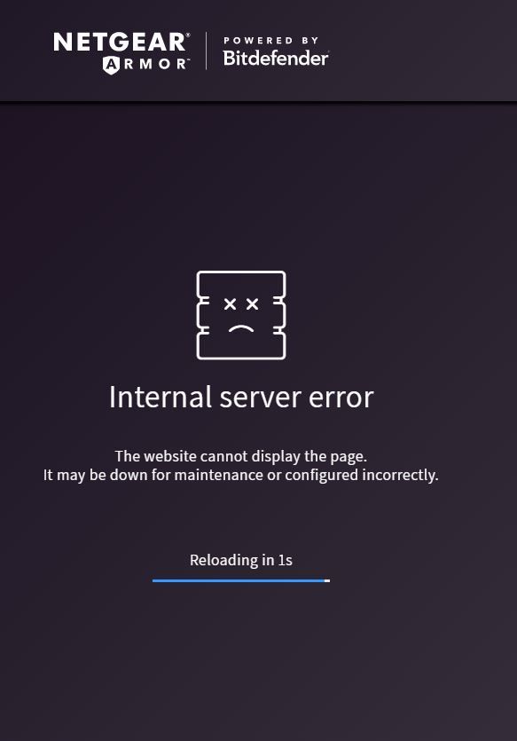 I'm unable to log into https://armor.netgear.com at present, keep getting 'internal server error' message. Anyone else seeing this?