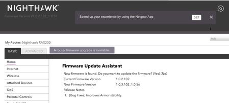 Netgear may have made a mistake in pushing out firmware 1.0.3.102_1.0.56 for the RAX200 router. This firmware is not listed on the Netgear Support site. This firmware is showing as an download on...