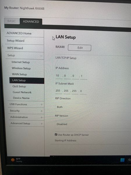 Netgear RAX48 LAN Setup has 10.0.0.0/24 for the ip subnet.
