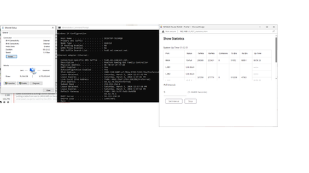 By the way, the command prompt window showing the config (ipconfig /all) of the computer ethernet port when it is connected directly to the cable modem; thus, the public IP address.