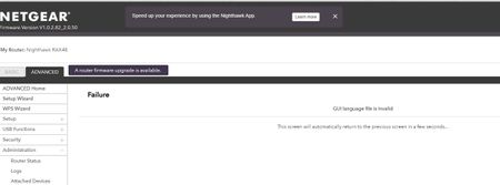 I tried to update the firmware of my RAX48 router and get the following error: GUI language file is invalid Firmware Update Assistant New firmware is found. Do you want to update the firm...