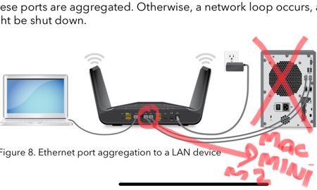 My ISP provide 2G ethernet speed connect to RAXE300 Multi gig internet port, i want to use lan RJ45 aggregate port lan3 and 4 to 10G ethernet port of mac mini m2 (has only one lan), Can I do that ? I...