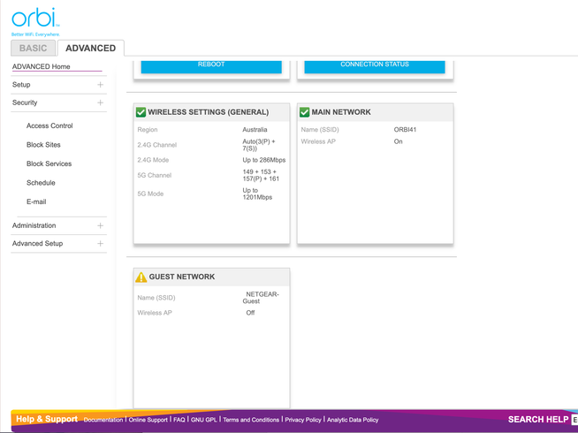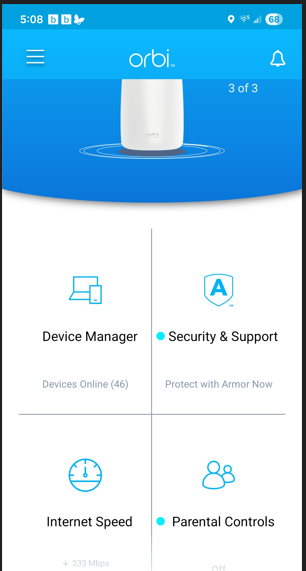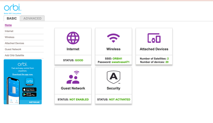 Can you post a screenshot of the Orbi App (after you log into the Orbi using it)?
