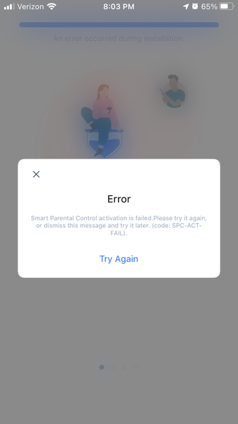 Impossible to use premium features: Smart Parental Controls App Error on Activation ("SPC-ACT-FAIL")