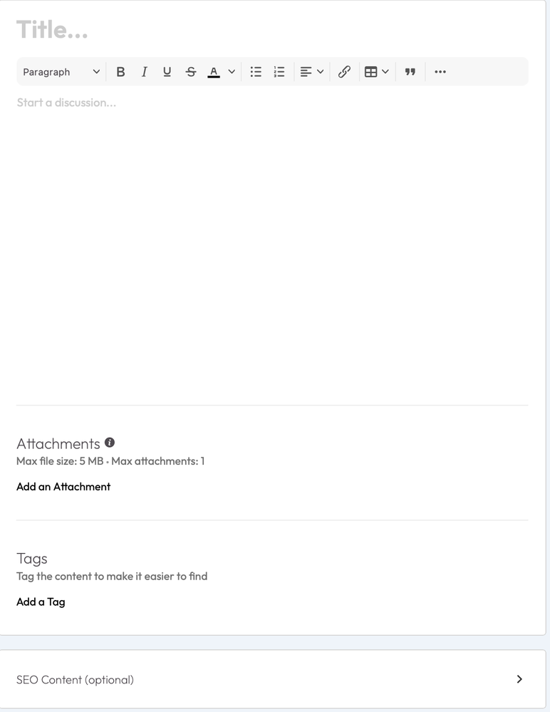 Perhaps it depends on "something". I just now Clicked Start a Discussion in "We Want Your Feedback" and got this: