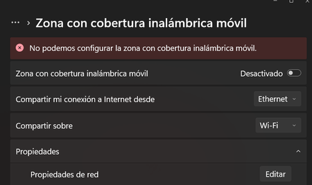 Como dije antes, para hacer eso en Windows 11 se usa una la opción Zona de cobertura móvil inalámbrica. Mi PC estaría conectado por cable ethernet al router y el A8000 transmitiría. Aunque debería actuar de las dos maneras también. Esto se hace en este contexto para jugar a juegos de realidad virtual de PC usando las Quest 3 sin cables.