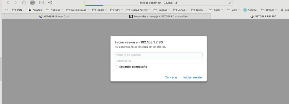 Al intentar ingresar esa IP en el navegador me aparece un cuadro para que ingrese usuario y contraseña. He probado colocar los datos de la red con su contraseña y no me permite el acceso. Tampoco al colocar el Admin y su correspondiente contraseña.