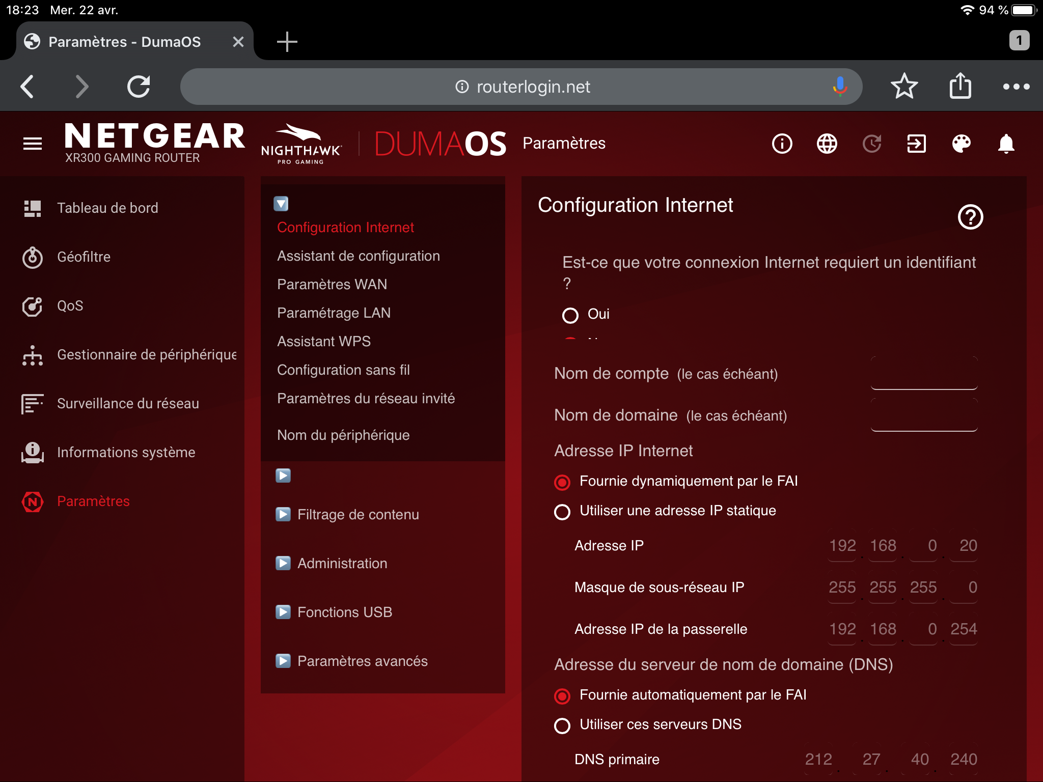 Avec l'installation de mon routeur XR 300 je n'ai plus que 60 mb/s de débit en réception alors qu'avec un branchement direct sur la box j'atteins les 900 mb/s pouvez vous m'expliquer la configuration à établir pour atteindre mon débit optimale avec mon routeur, à défaut celui-ci n'a aucun intérêt ?