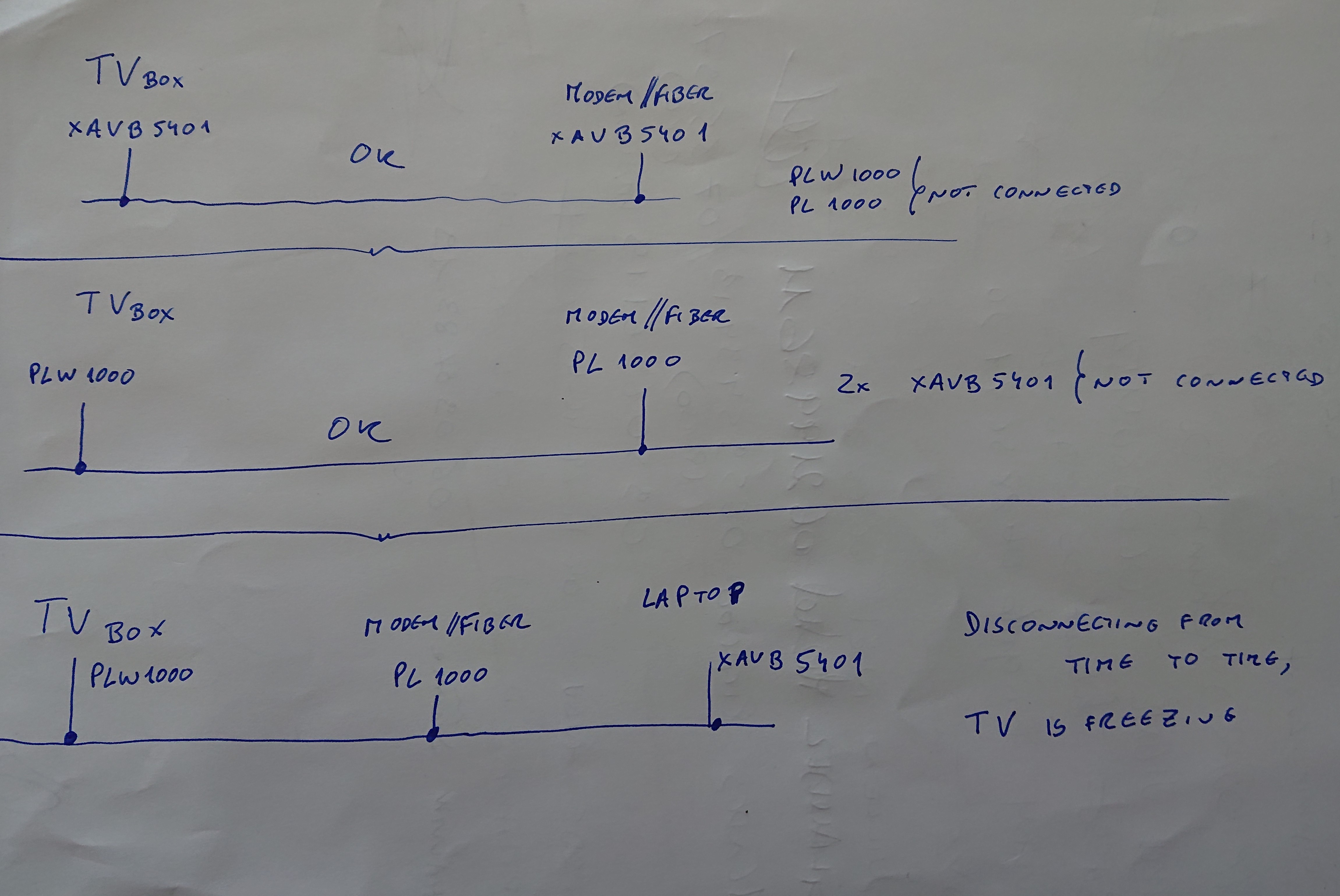 Si je fais TV avec la XAVB5401 et Modem avec la PL1000 ça ne marche pas non plus. (même avec les autres dans le carton)