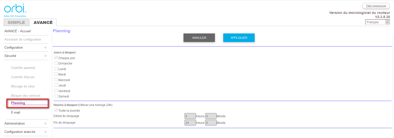 Mais quand est-ce qu'on pourra programmer l'activation/désactivation du wifi sur le routeur et les satellites Orbi selon un horaire?