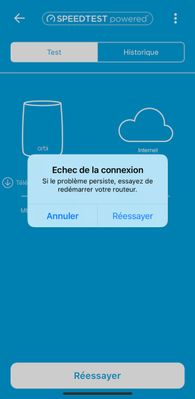 Bonjour, Depuis quelques temps, le test de débit internet "Speedtest" ne fonctionne plus. Lorsque je lance "tester mon débit" sur l'app, j'ai le message suivant : "Echec de la connexion. Si l...