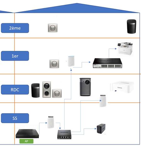 Bonsoir, J'ai actuellement un RBK50 + un RBS20 reliés en backhaul sur le principe de l'image ci-dessous, le tout configuré en AP. Sur cette base, j'aurais 3 questions svp : - Je n'a...