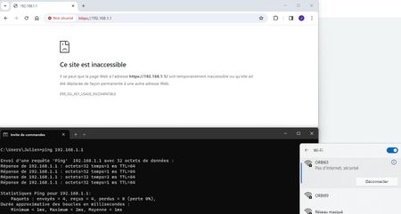 je ne parviens plus à me connecter depuis un PC fixe via le navigateur à la console d'administration du Orbi. Le PC est relié en filaire au Orbi. Le routeur Orbi est connecté sur une b...