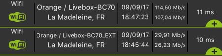 Lorsque vous aviez fait ce test, où vous trouviez-vous par rapport à la box et au répéteur. Vous étiez connecté au réseau 2.4 ou 5Ghz ?