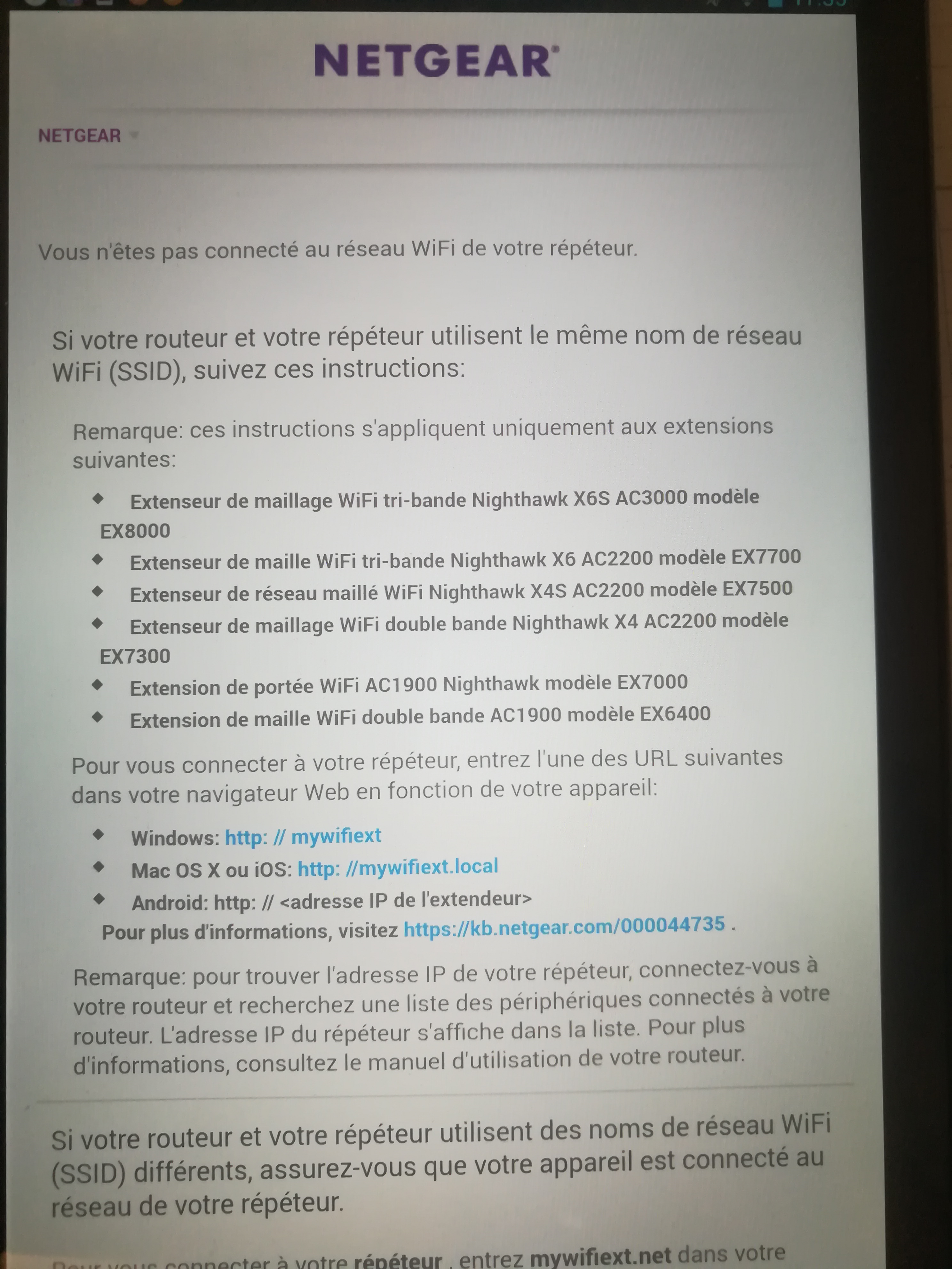 j'ai effectué toute l'installation mais ça ne fonctionne pas; je le trouve dans mes recherches de wifi avec le meme nom que mon wifi de base avec a la fin _ext ; je peux m'y connecter mais pas d'acc...