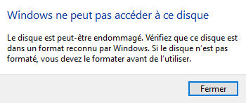 En double cliquant sur le .img, j'ai un avertissement de Windows : Windows ne peut pas accéder à ce disque.
