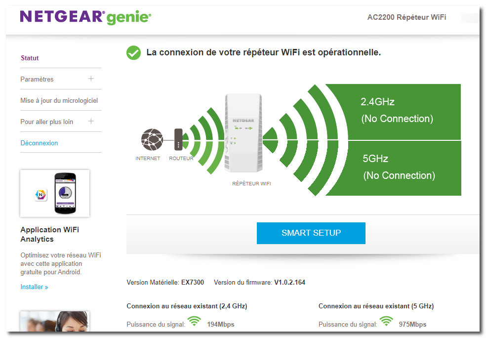 J'ai utilisé Netgear Genie, pour configurer mon réseau étendu en 2Ghz et 5 Ghz.