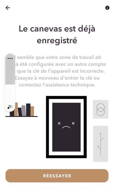 Hello, I bought a Meural MC315 and I can't connect with the Android app! I always get the same message "The canvas is already saved" "...it seems that your work area has been set up with anothe...