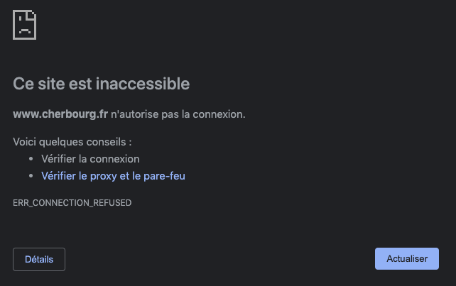 Sur Safari, le message est "impossible de se connecter au serveur"