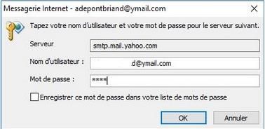 Je suis client fibre SFR et ai configuré le serveur de courrier entrant avec les paramètres yahoo et le serveur de courrier entrant avec les paramètres sfr :