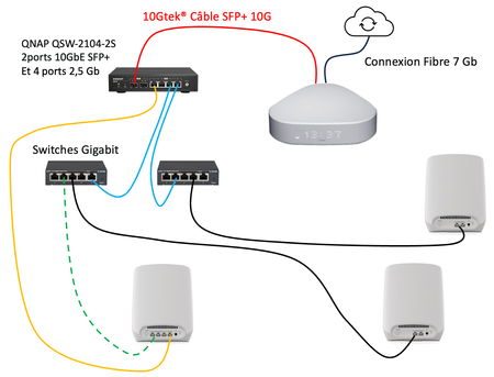 Bonjour à tous, Je viens de finaliser l'installation de mon réseau, mais j'ai un doute au vu du mapping réseau que l'application Orbi me présente. Ci-dessous un schéma de mon installation. Ma ques...