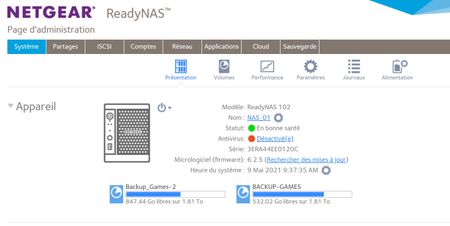 Bonjour, Je possède un NAS NetGear RN102 ( avec 2*HDD 2Tb WD RED). Mon NAS, dans l'outil READY NAS indique bien que deux disques dur sont présents. J'arrive à accéder au contenu d'un des deux disq...