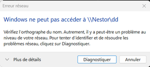 Dans l'explorateur, j'arrive à voir les dossiers mais j'obtiens l'erreur citée plus haut en cliquant sur un des dossiers.