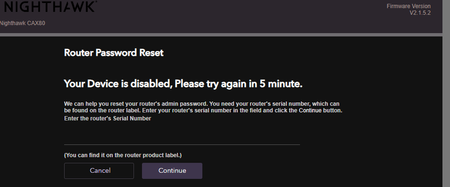 My CAX80 does not allow me to log in to manage it and redirects me to a forced password reset page. No matter what I do, it takes me back to the same page: PwdRec_index.htm it also says "Your Device...